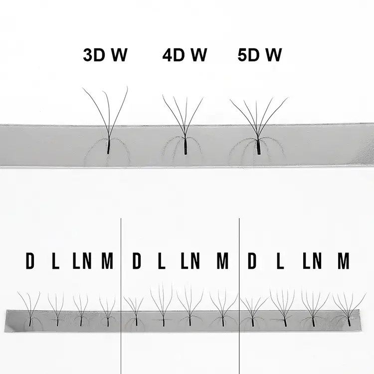 • Ravno koreninsko in obrnjeno repno zasnovo: Za razliko od c/d curls ima L curl ravno korenino, ki se prilega naravnim trepalnikom, z naravnim gibanjem navzgor na sredini, ki tvori elegantno "L" - oblikovano krivino