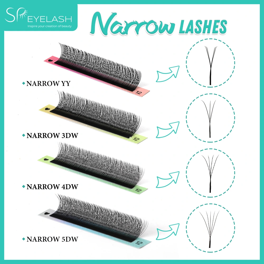 SP -jev Epalash se je vedno osredotočil na zagotavljanje tehnoloških rešitev za inovacijo za industrijo trepalnic. Ozke YY trepalnice ponujajo različne dolžine od 8-15 mm in različnih stopinj curl (c/d). S svojim izjemnim konceptom uspešnosti in inovativnega oblikovanja je postal najprimernejši izdelek za strokovnjake in navdušence, ki zasledujejo kakovostne učinke trepalnic.