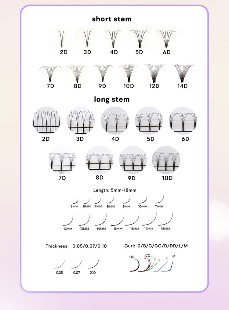 Zasnovani z uporabnikom prijaznostjo v mislih, so Premade Fan Fanše 9d kratke stebelne trepalnice kot nalašč tako za začetnike kot za izkušene tehnike trepalnic. Omogočajo vam, da takoj izboljšate vse komplete trepalnic z glasnostjo, kar zagotavlja nemoten in enostaven postopek uporabe. In lahka folija, ki ga je enostavno lupati, omogoča hitro in brezhibno uporabo, zaradi česar je vaš potek dela gladkejši in učinkovitejši.