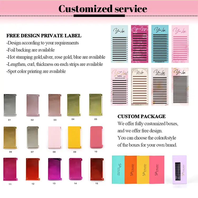 Kot profesionalni dobavitelj trepalnic ima SP trepalnica več kot 20 let izkušenj pri proizvodnji trepalnic in tesno sodeluje s številnimi dobro znanimi blagovnimi znamkami trepalnic. Podpiramo prilagojene zahteve za oblikovanje in ponujamo storitve po meri, da se zagotovi, da se vsak izdelek poravna z vašim edinstvenim slogom. Nudimo kakovostne, uporabniku prijazne izdelke in izjemno nakupovalno izkušnjo. Če imate kakršna koli vprašanja o naših izdelkih za razširitev trepalnic, nas kadar koli kontaktirajte. Naša ekipa je tu, da ponudi zadovoljive rešitve.